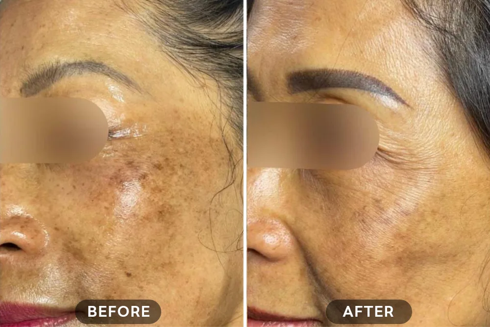 Facial hyperpigmentation before and after stem cell-based facial treatment.